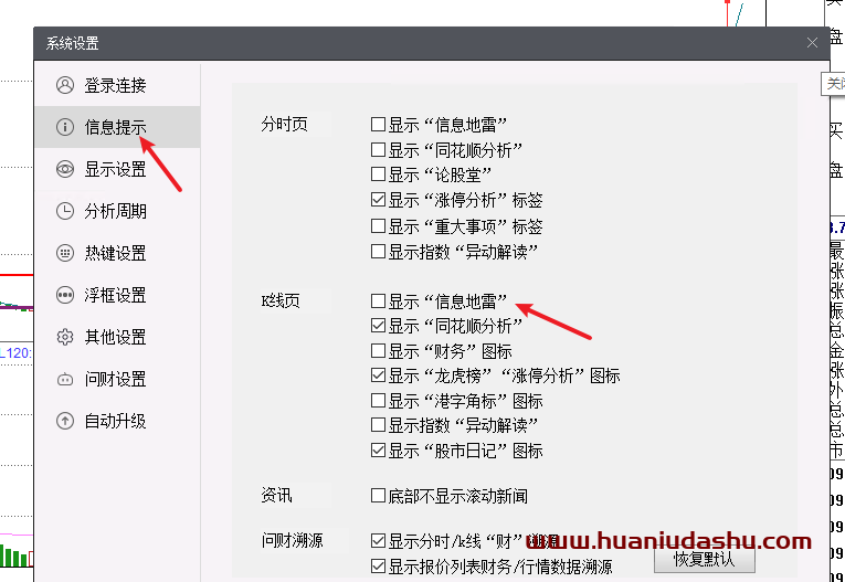 您的位置 首页 同花顺 同花顺消息关闭 新手如何买基金 发布于 2025年11月6日 评论关闭 阅读(6) 怎么永久关闭电脑版同花顺页面下方的新闻? 不知道是否取消了, 第一步: 我是这样操作的: 点击 设置: 然后把 信息提示-》 K线页 取消 显示 “信息地雷” 第二步: 点击 资讯 -》 更多资讯 把订阅的全部取消掉
